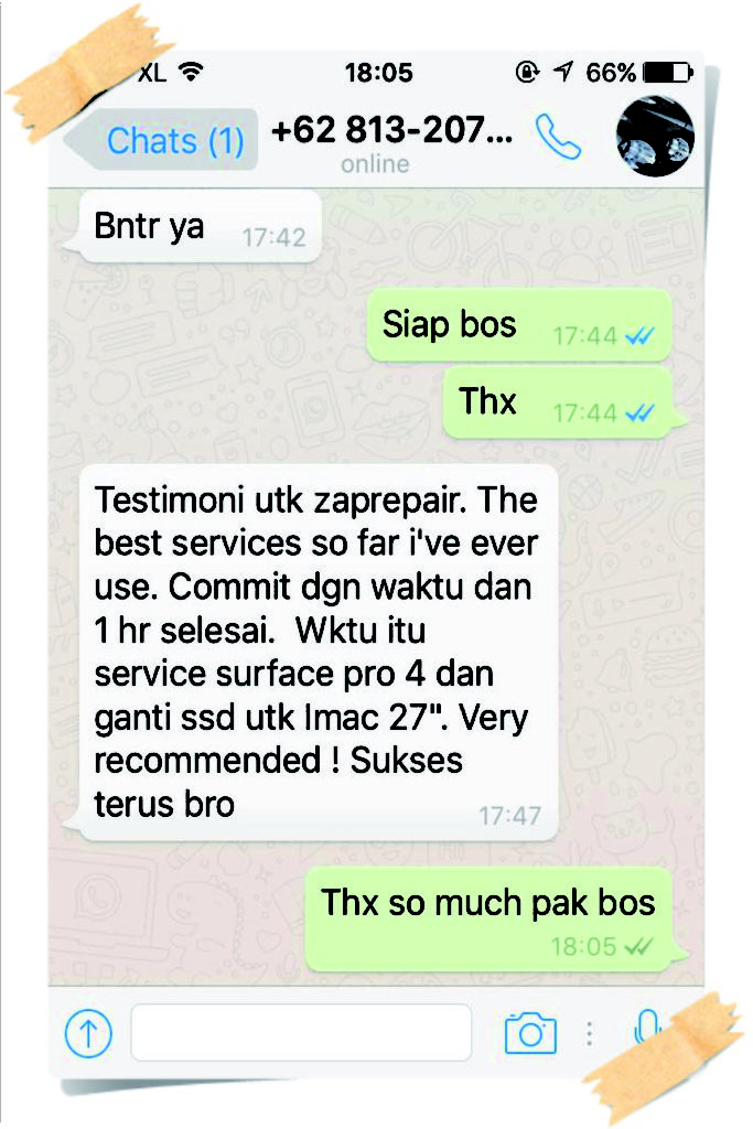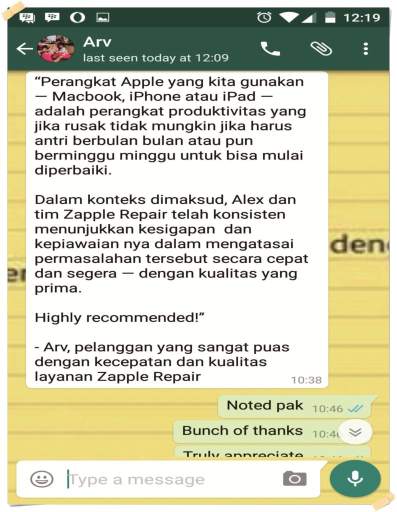 iServisin adalah perusahaan yang bergerak di bidang jasa perbaikan produk-produk Apple, Android dan Windows. Visi kamiMenjadi pusat servis gadget (handphone, tablet, notebook) Apple, Android dan Windows yang terpercaya di wilayah Tangerang dan sekitarnya. Misi kamiMemberikan pelayanan dan harga terbaik kepada customer karena kami sadar kepercayaan customer adalah landasan utama bagi usaha kami. Kelebihan kami *FREE […]